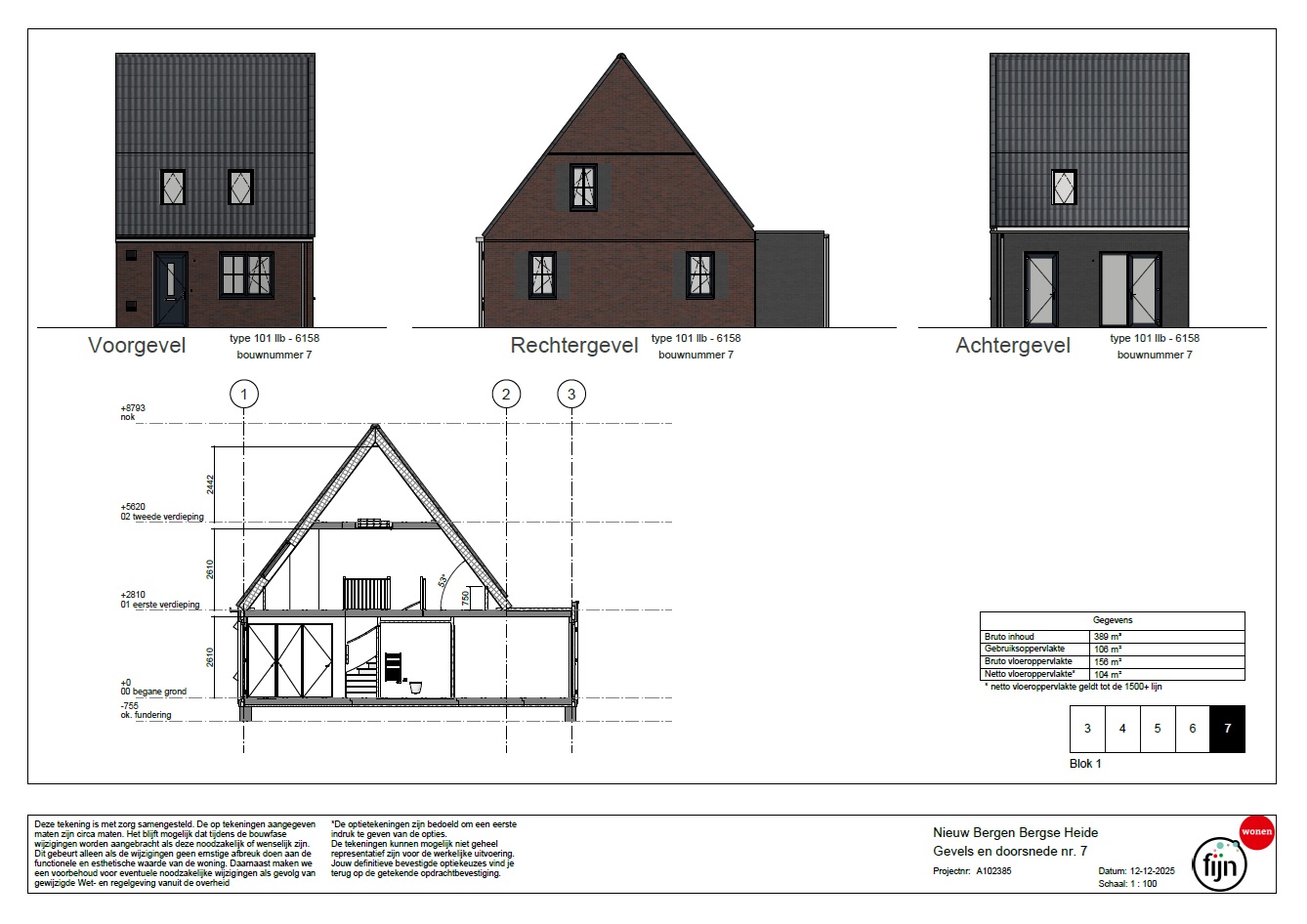 De bouwblokken hebben een karakteristieke uitstraling door het gebruik van verschillende kleuren bakstenen, gemetselde luiken en een variatie in raamkozijnen. Kavels 3 t/m 7 liggen bij de entree van het woonerf en hebben een unieke ligging met de achtertuin aan de bosrand. Dit biedt de bewoners veel privacy en geeft een groene uitstraling.